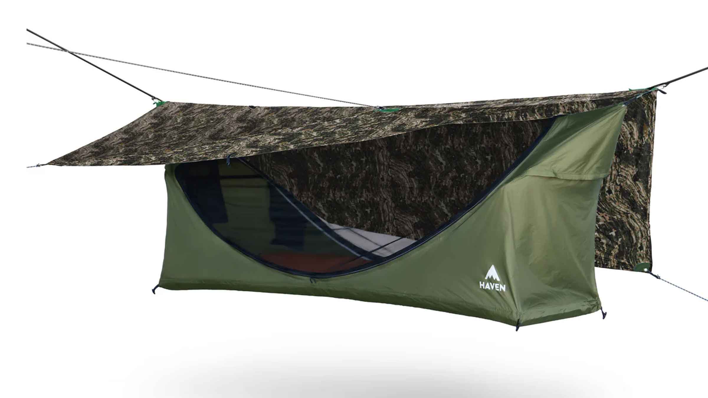 If there’s an award for the coziest all-in-one hammock that feels the most like passing out in your own bed, but, you know, suspended in midair, it would go to the Haven. A zippered mosquito netting, durable rain fly, and plush insulated inflatable pad (complete with pump sack) make it one of the most comfortable and posh lay-flat hammocks.
