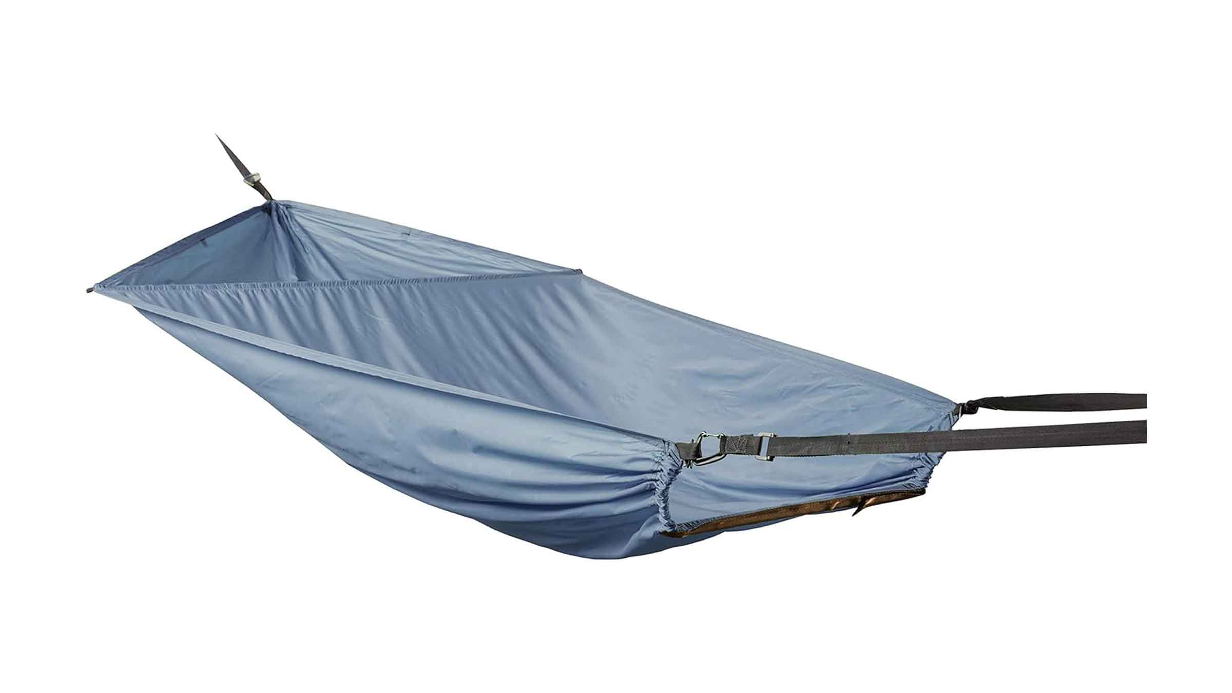 The construction is streamlined and slightly more stable than other lay-flat hammocks thanks to no spreader bar at the feet, but still two points of contact. But if you plan to overnight in it on your next camping trip and want to be protected from the elements, you’ll have to bring supplemental gear like netting and a tarp.