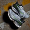 If you want to get wonky, Saucony delves into alight-wave discussion when pushing this product. According to the company,light at shorter wavelengths is absorbed by objects and emitted at longerwavelengths, making a viewer see a brighter, fluorescent-type color. TheViZi-PRO orange, Saucony says, is one of the brightest colors duringboth day and night due to the longer wavelengths emitted by the color.