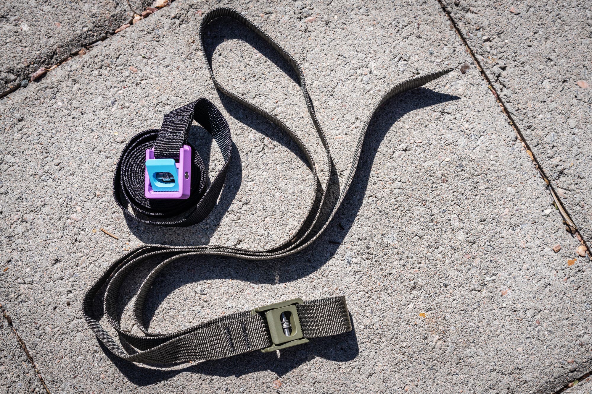 Load wise, Eisen made clear that the straps are not safety certified, and absolutely not to be used for any activity where a failure could cause injury, like supporting a climber. But he does use high-quality mil-spec nylon webbing that his company tested to a breaking strength of well over 500 pounds, more than enough for nearly any tie-down use you can think of.